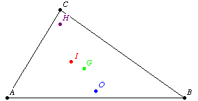 三角中心是一個點,其三線座標根據參考三角形的邊長和角定義,並且可以為其定義所謂的三角中心函式。著名的三角中心包括內心 I、重心 G、外心 O 和垂心 H,如上圖(左圖)所示,適用於參考三角形 ABC。